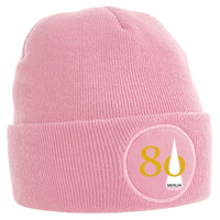 Circular patch beanie made from double-layer knit construction and soft-touch fabric to provide comfort and warmth.